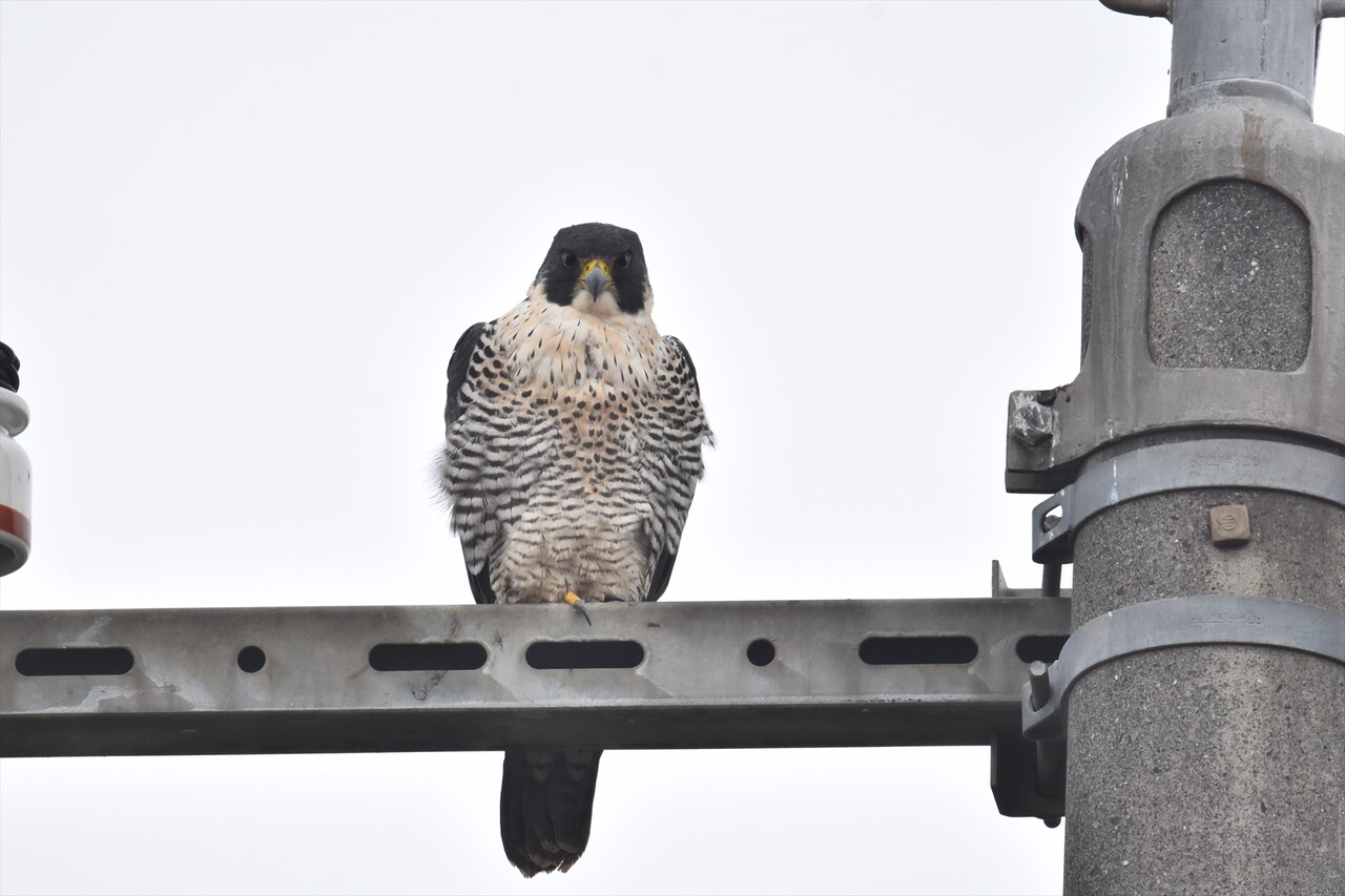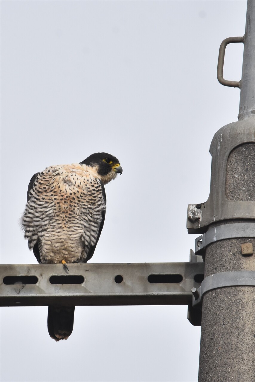 毎年この河口には少しづつ場所を変えて、3羽程度のハヤブサが居着いています。