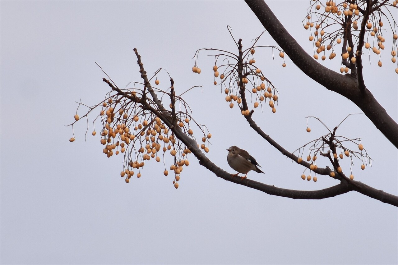センダンの木のある公園にツグミとムクドリの大きな群れがいました。
